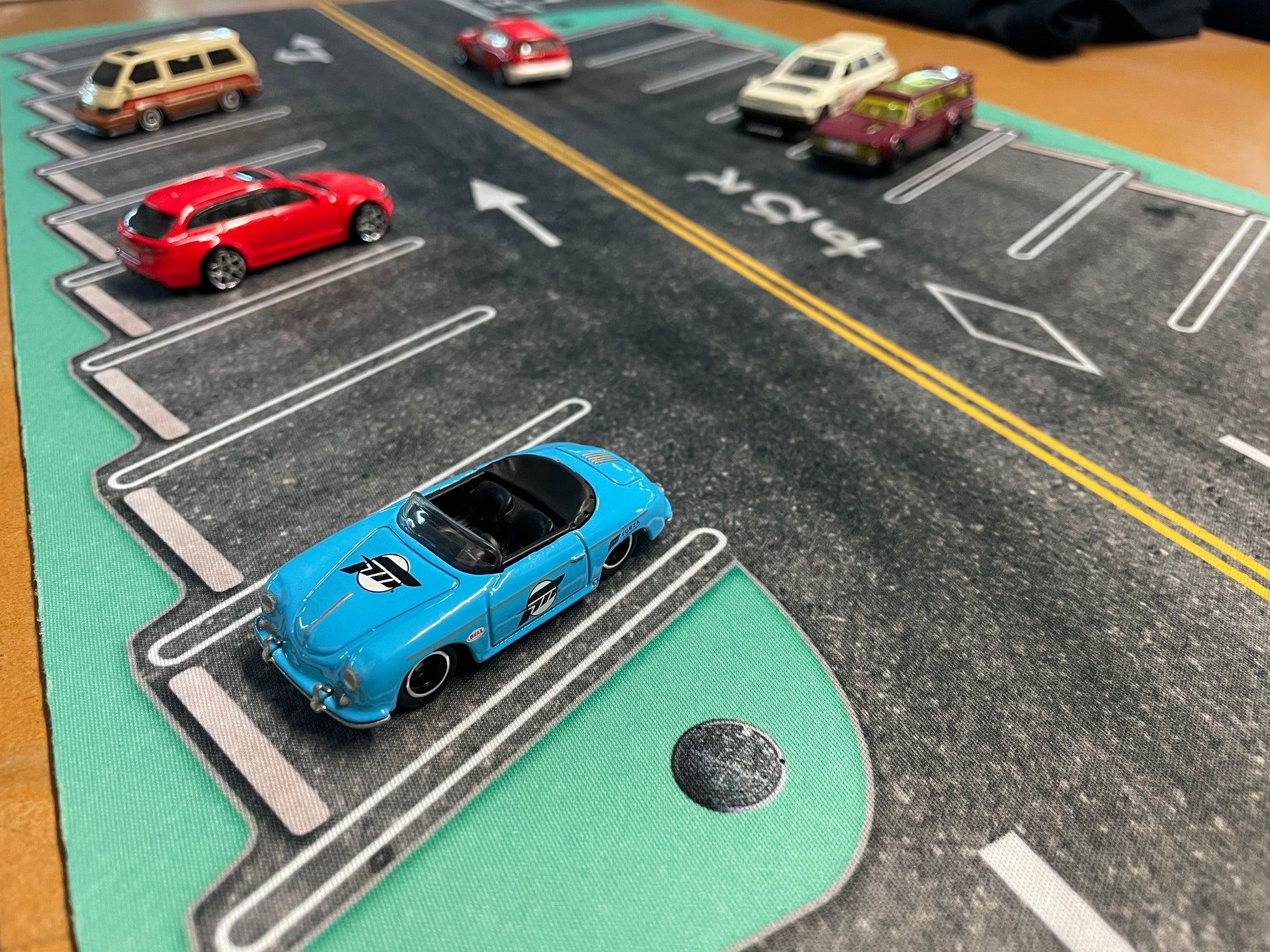 Moquette TurboPad 70x35cm au design style Tokyo, 20 places de parking. Circulation sur la voie de gauche et de nombreux détails à ne pas manquer. Echelle pour voitures 1/64