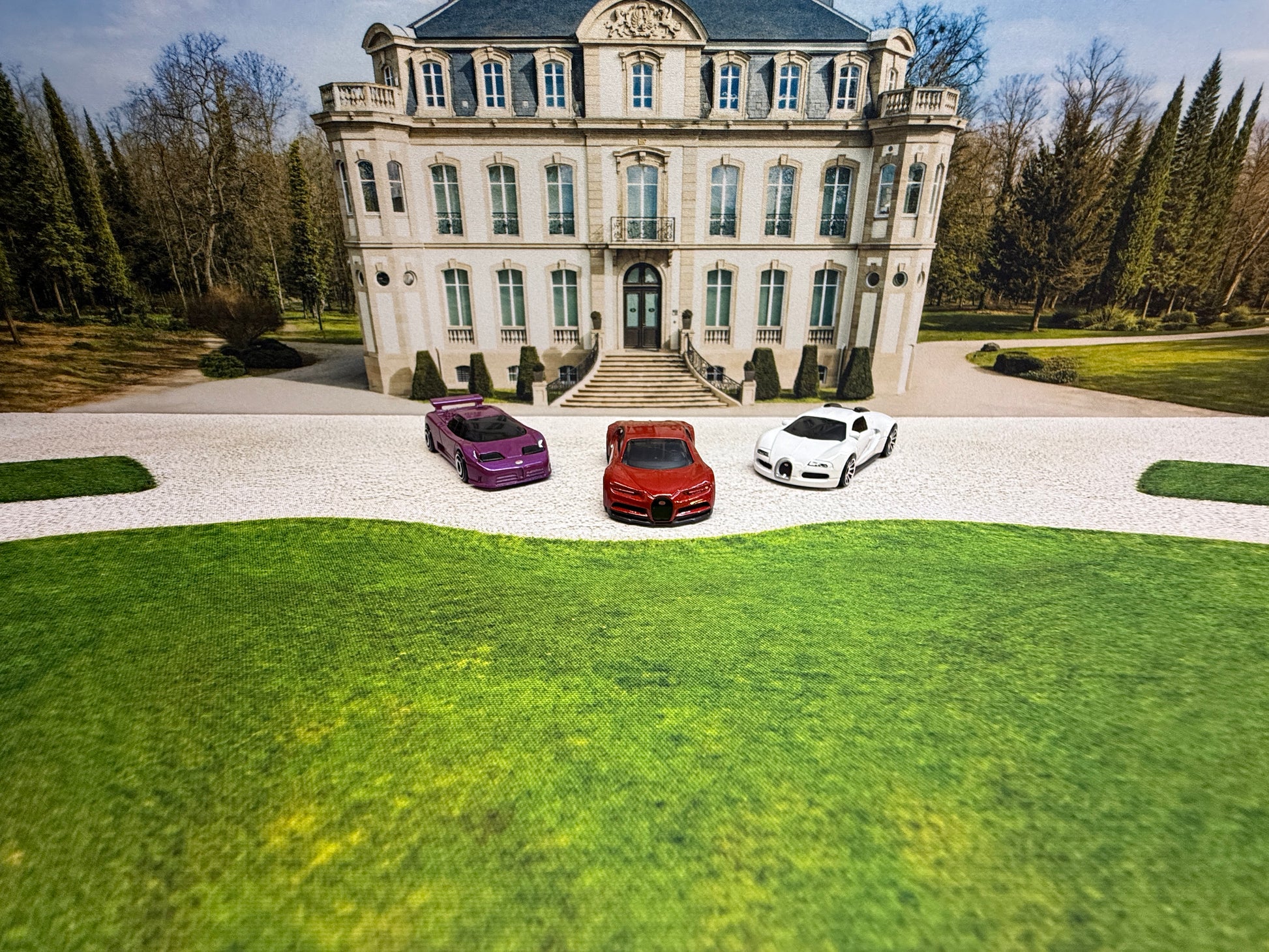 Pensada para coleccionistas de coches a escala 1:64 que buscan algo más que una simple base, esta TurboPad está inspirada en los terrenos y accesos de la histórica mansión de Ettore Bugatti, situada en Molsheim, un lugar clave en la historia del automovilismo de lujo.