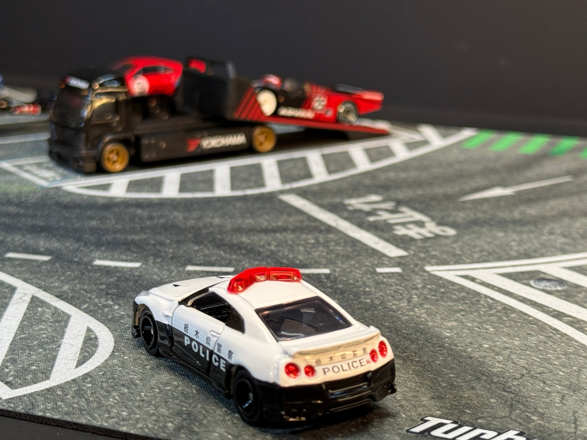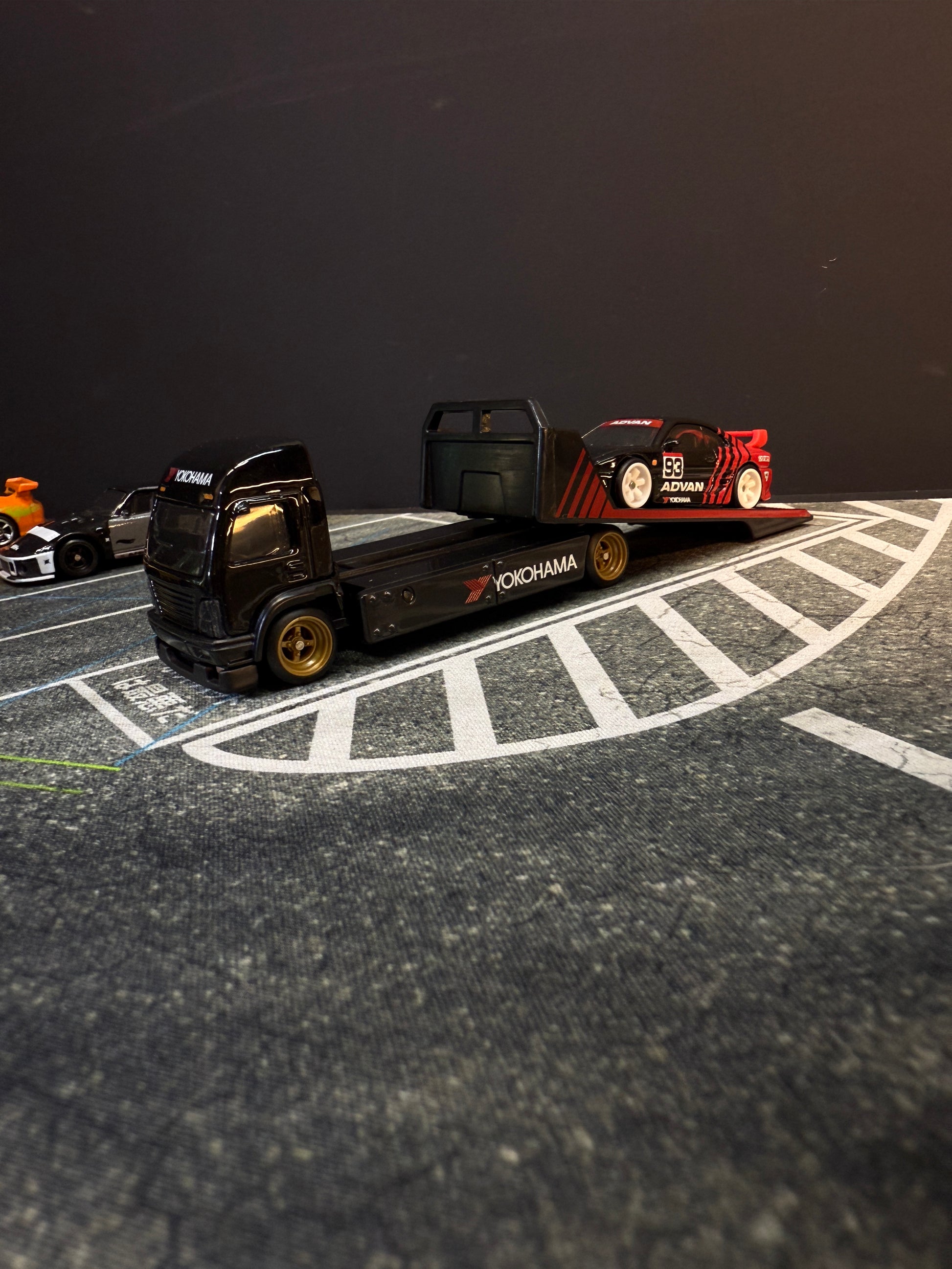 Pensado para coleccionistas de coches a escala 1:64 que buscan algo más que un simple escenario, este TurboPad reproduce con estilo realista la zona de parking más característica de Umihotaru, incluyendo el área destinada a camiones donde tus Team Transport de Hot Wheels encajan perfectamente.